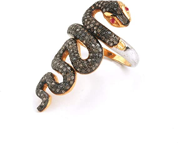 Handmade Natural Diamond Ring,Black Brown Snake Ring With Deep Rich Ruby And 1 Carat Brown Natural Diamond (I2-I3 Clarity) For Women
