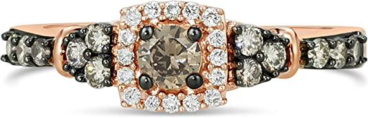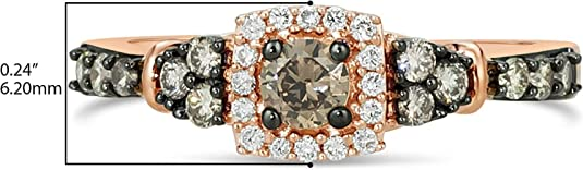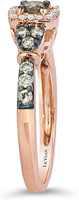1/2 Carat White and Chocolate Diamond Cushion Shaped Halo Ring for Women in 14k Rose Gold (G-H/Fancy Brown, VS2-SI1, cttw) Engagement Anniversary Ring Size 5 to 10 by LeVian